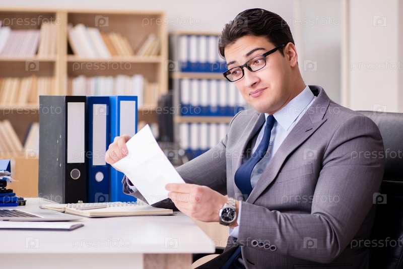 Бизнесмен получает письмо в офисе
