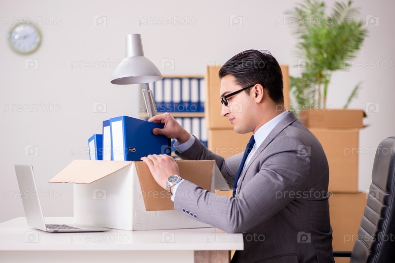 Молодой красивый бизнесмен переезжает в офис