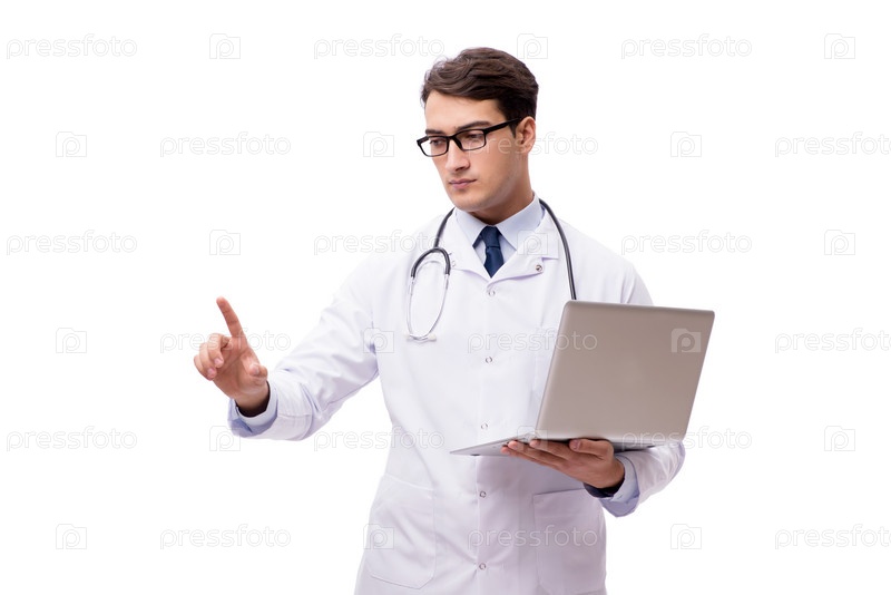 Доктор с ноутбуком, изолированным на белом фоне