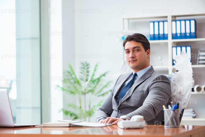 Ангел-инвесторская концепция с бизнесменом и крыльями