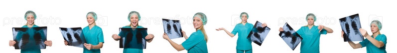 Женщина-врач, изучающая рентгеновское изображение