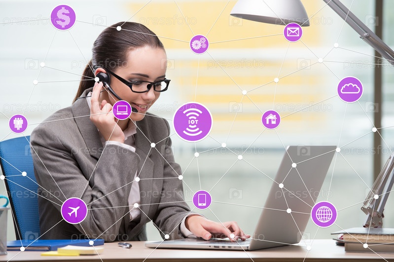 Концепция Интернета вещей с деловой женщиной