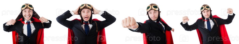 Человек в красном покрытии изолирован на белом