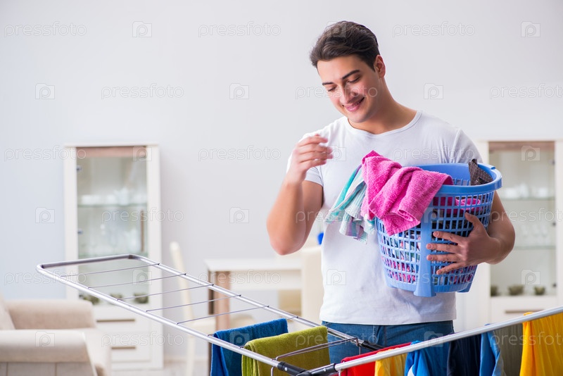 Мужчина, стирающий белье дома