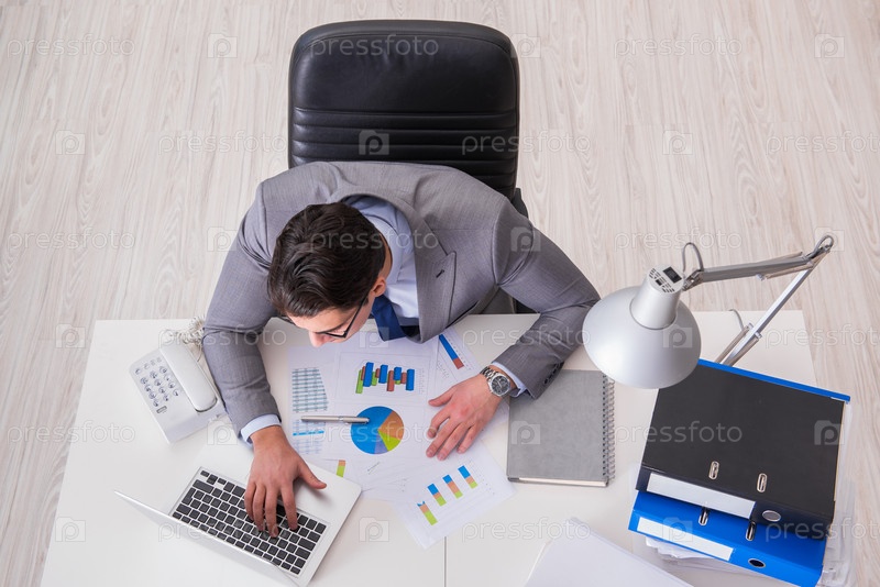 Вид сверху на бизнесмена, работающего над графиками бизнеса
