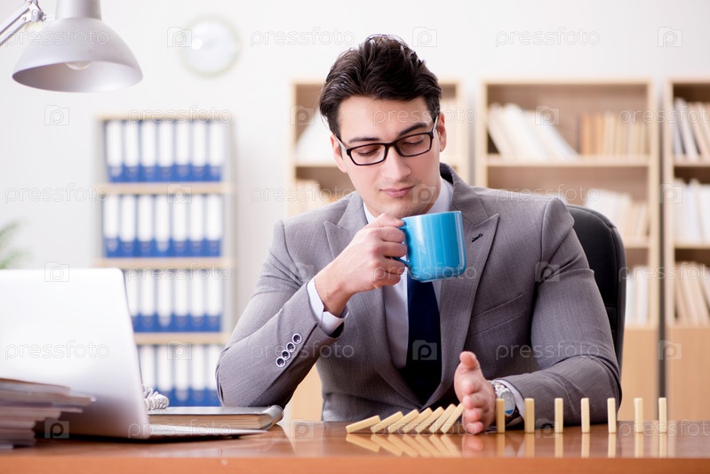 Бизнесмен с домино в офисе