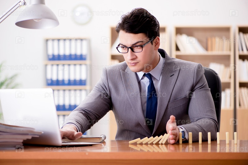 Бизнесмен с домино в офисе