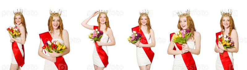 Победительница конкурса красоты изолирована на белом