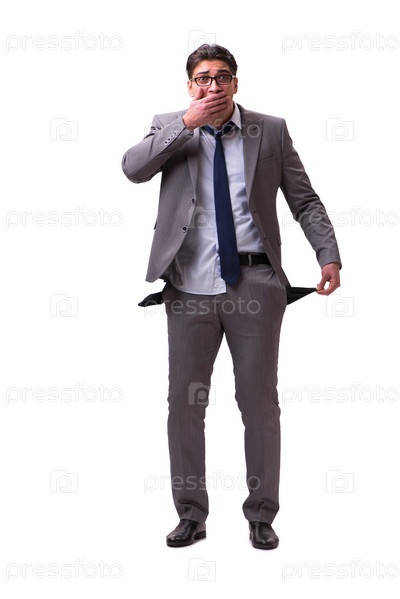 Банкротный бизнесмен изолирован на белом фоне