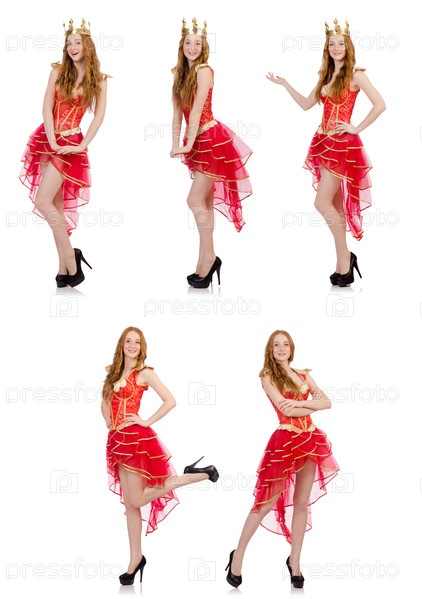 Королева в красном платье изолирована на белом