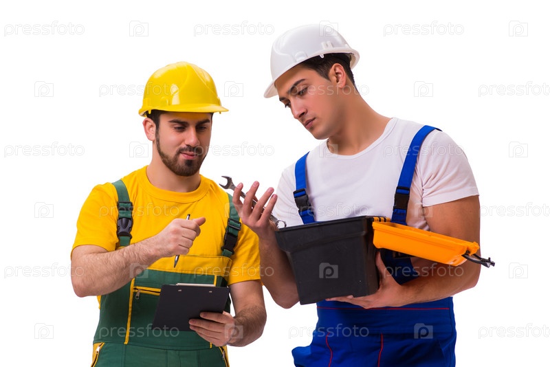 Два рабочих изолированы на белом фоне