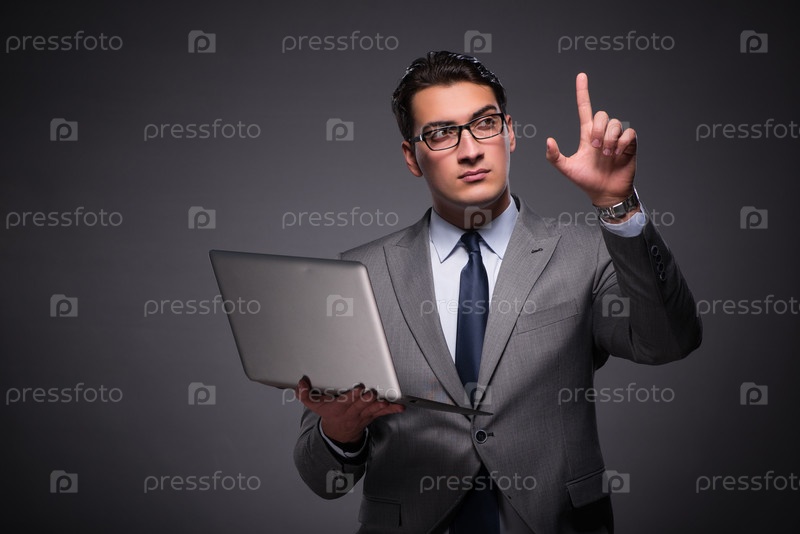 Красивый бизнесмен, работающий на ноутбуке