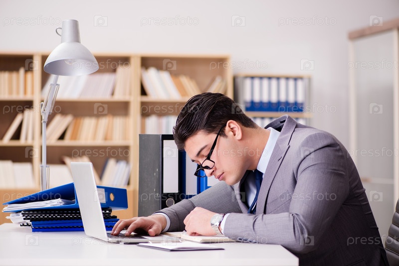 Усталый бизнесмен, работающий в офисе