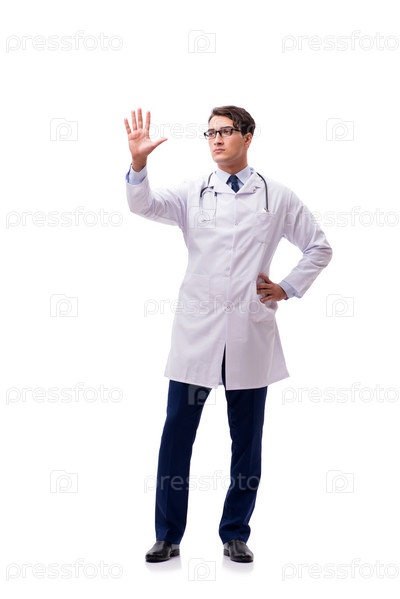 Молодой врач изолирован на белом фоне