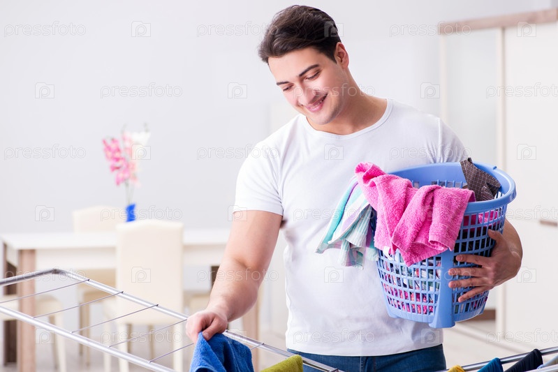 Мужчина, стирающий белье дома