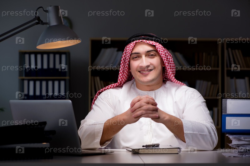 Арабский бизнесмен, работающий допоздна в офисе