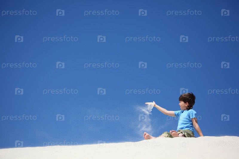 Мальчик играет с песком на пляже