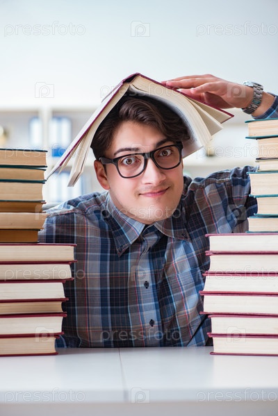 Глупый смешной студент готовится к экзаменам в университете