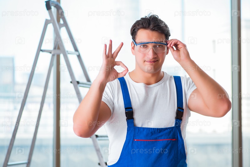 Молодой работник с защитными очками