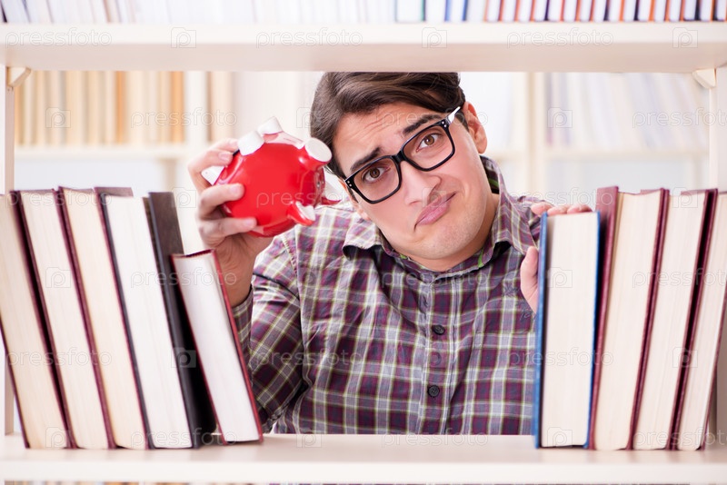 Молодой студент в дорогостоящих учебниках концепция
