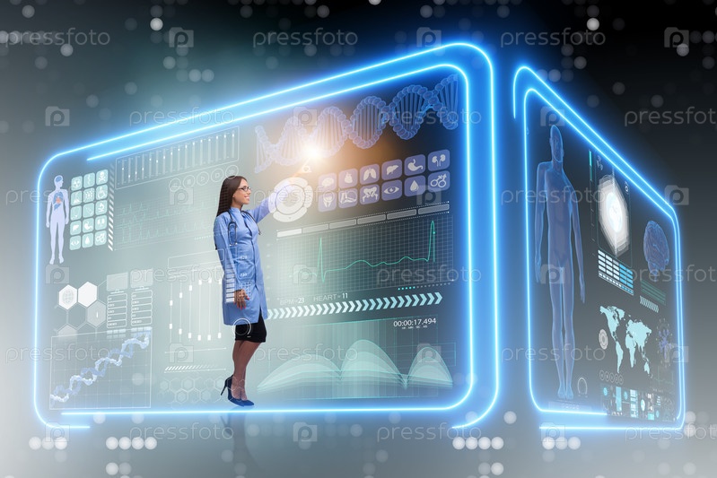 Женщина-врач в футуристической медицинской концепции