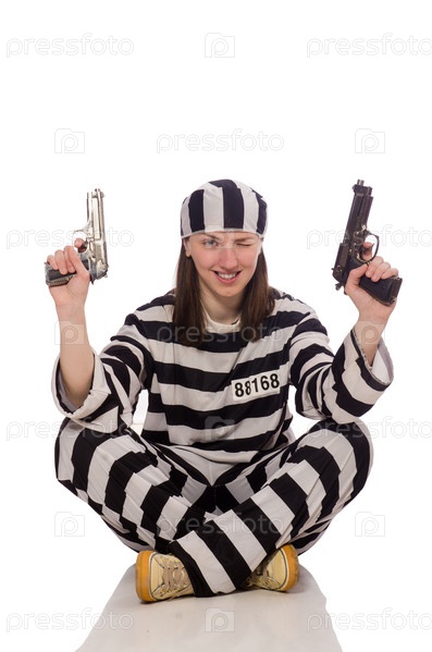 Молодая женщина в тюрьме изолирована на белом