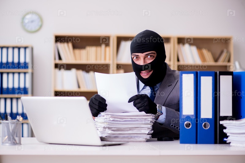 Преступный бизнесмен с балаклавой в офисе