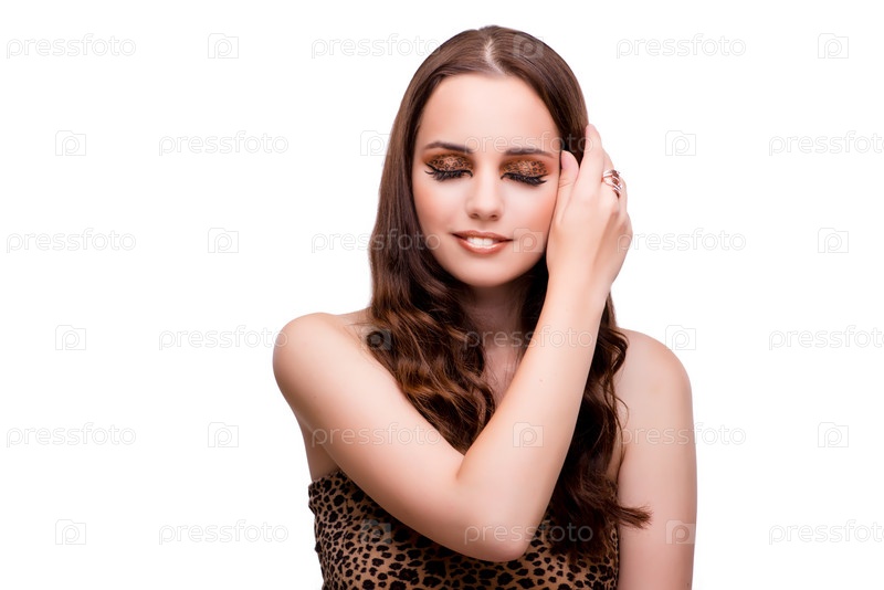 Молодая женщина в концепции красоты на белом изолированном фоне