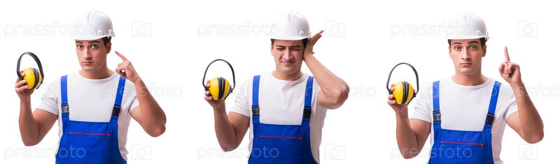 Строительный рабочий изолирован на белом фоне
