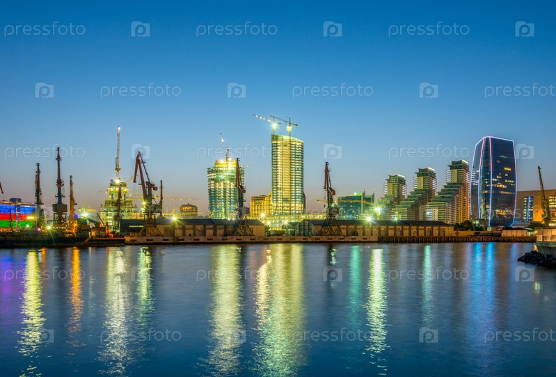 Вид на морской порт в Баку Азербайджан Ночной вид
