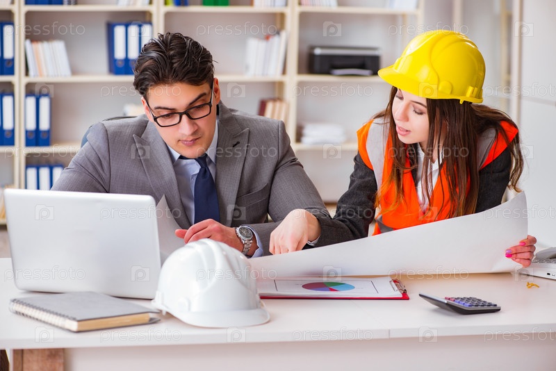 Строительный мастер надзиратель просматривает чертежи
