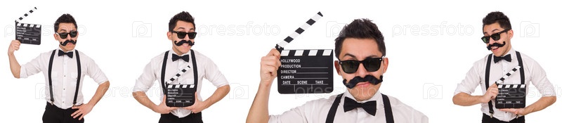 Мухлистый мужчина с клаппербором, держащийся изолированным на белом