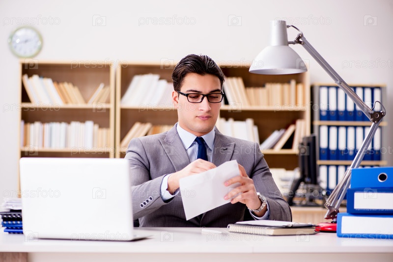 Бизнесмен получает почтовый конверт в офисе