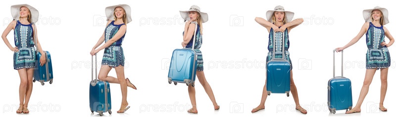 Коллаж женщины, готовящейся к летним каникулам в изоляции на белом