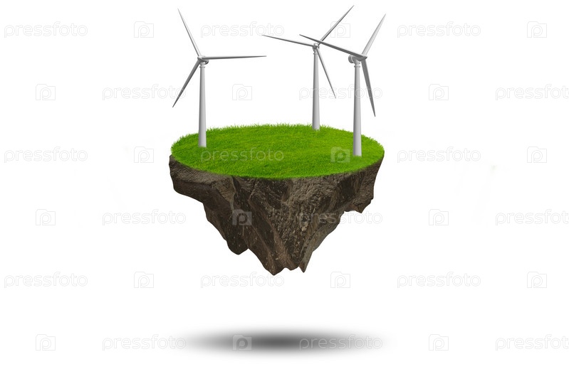 Летающий плавучий остров в концепции зеленой энергии - 3d rendering