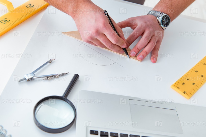 Инженер-мужчина, работающий над чертежами и планами