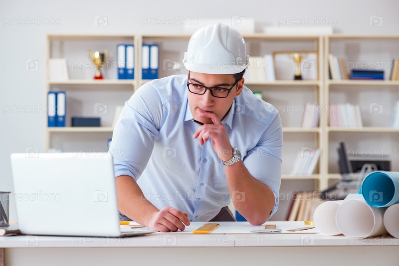 Инженер-мужчина, работающий над чертежами и планами