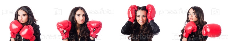 Молодая женщина с боксерской перчаткой
