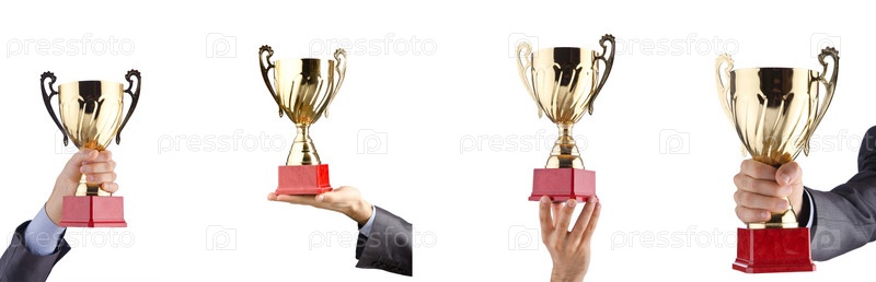 Коллаж бизнесмена, получающего награду