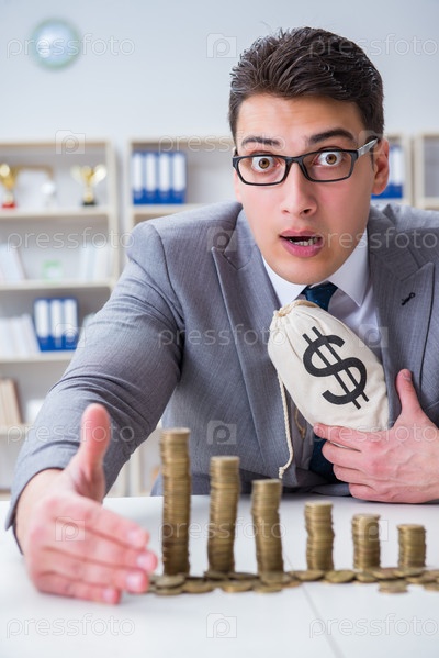 Бизнесмен с золотыми монетами в концепции роста бизнеса