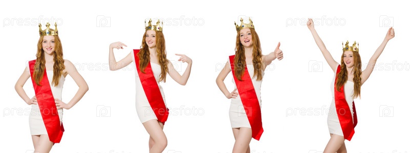Победительница конкурса красоты изолирована на белом
