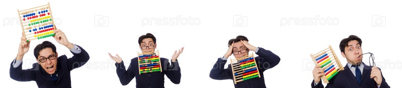 Разгневанный бухгалтер с эбакусом, изолированным на белом