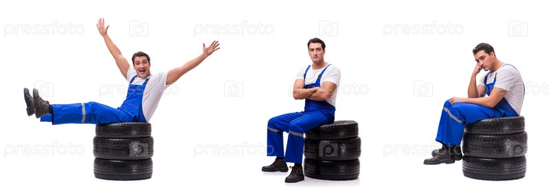 Красивый ремонтник шин изолированный на белом