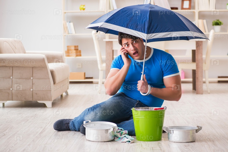 Мужчина дома, имеющий дело с соседней утечкой воды