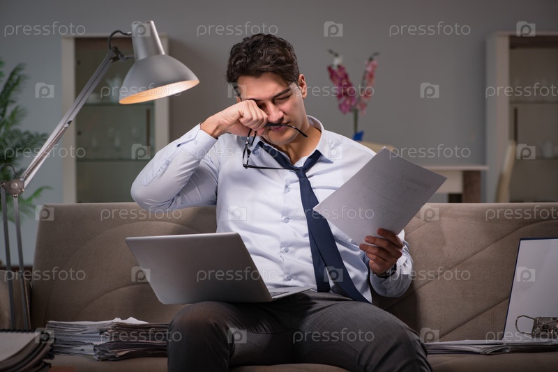 Бизнесмен-работохолик, работающий допоздна дома