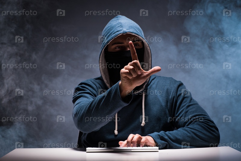 Компьютерный хакер работает в темной комнате