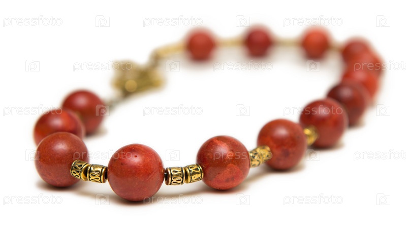 Прекрасное ожерелье с красными бусинками, изолированным на белом фоне
