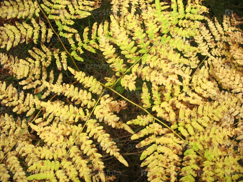 Пожелтевшие листья папоротника орляка, rteridium aquilínum