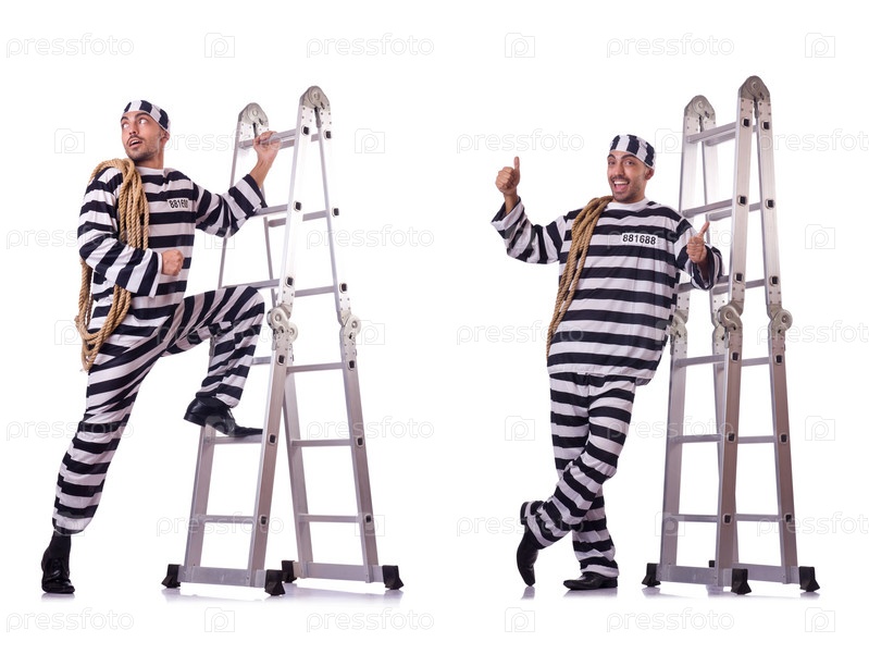 Заключенный тюрьмы изолирован на белом