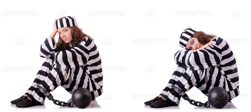 Заключенный в полосатой форме на белом